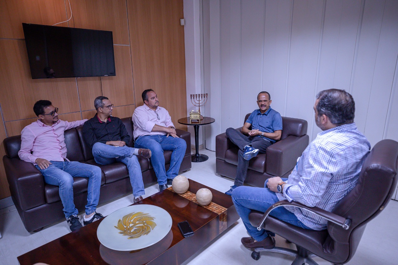 Em outro momento, o prefeito Elinaldo recebeu também o vice-prefeito José Tude e os gestores das secretarias da Administração (Secad) e do Desenvolvimento Econômico (Sedec), Helder Almeida e Waldy Freitas, respectivamente, para tratativas sobre as ações de responsabilidade das referidas pastas.