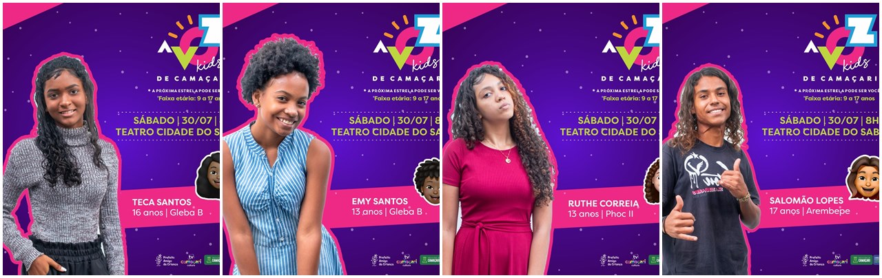 Transmitidos pela TV Camaçari Cultura, os programas terão como apresentadores Márcia Tude e Anderson Hassys; e jurados, Elly Nascimento, Neide Telles e Paulo Carrilho. O concurso A Voz de Camaçari Kids é promovido pela Secretaria da Cultura (Secult) em parceria com o Projeto Prefeito Amigo da Criança (PPAC), e é voltado para crianças e adolescentes de 9 a 17 anos residentes do município, com valor total de R$ 88.500 em premiação.
