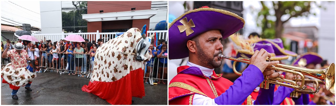 Valorizando e difundindo as tradições culturais de Camaçari, outro grupo que distribuiu simpatia durante o desfile foi o Boi Estrela de Barra do Jacuípe. Como um dos representantes das manifestações populares do município, o grupo, inspirado no boi-bumbá ou bumba meu boi, surgiu há 86 anos e tem mais de 30 componentes.